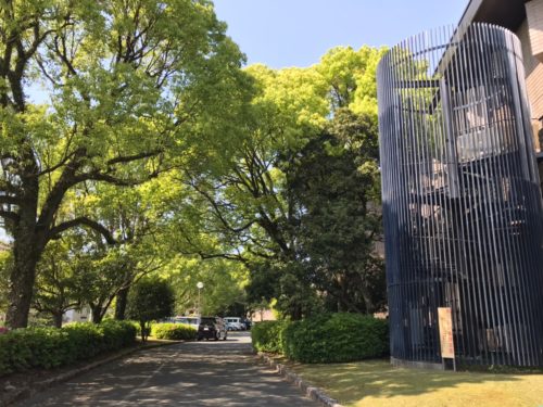 駐車場は、熊本市立体育館の駐車場にとめられます。入口で警備員さんに用件を確認されますが、図書館の貸出サービス利用と伝えればOK!
