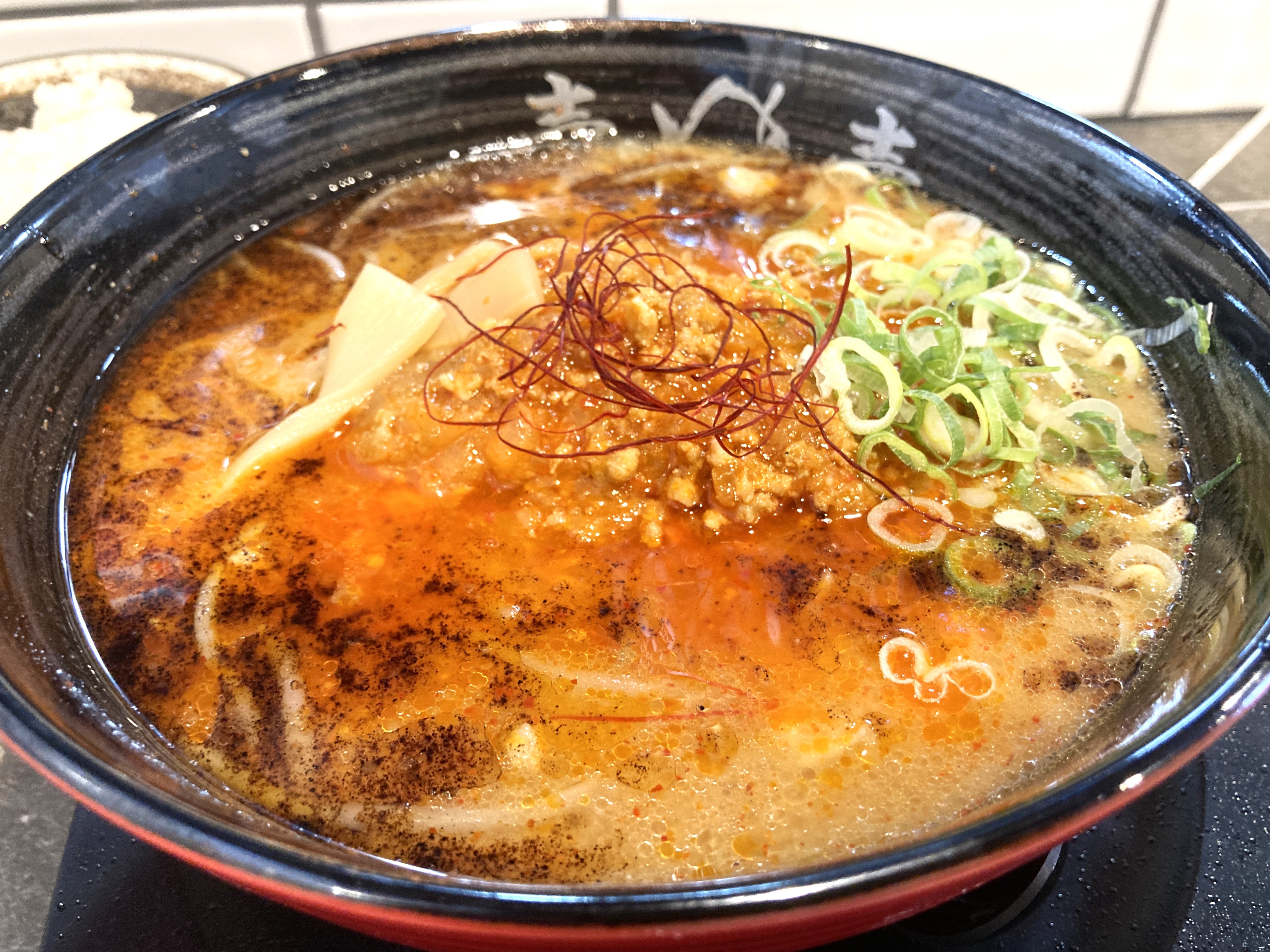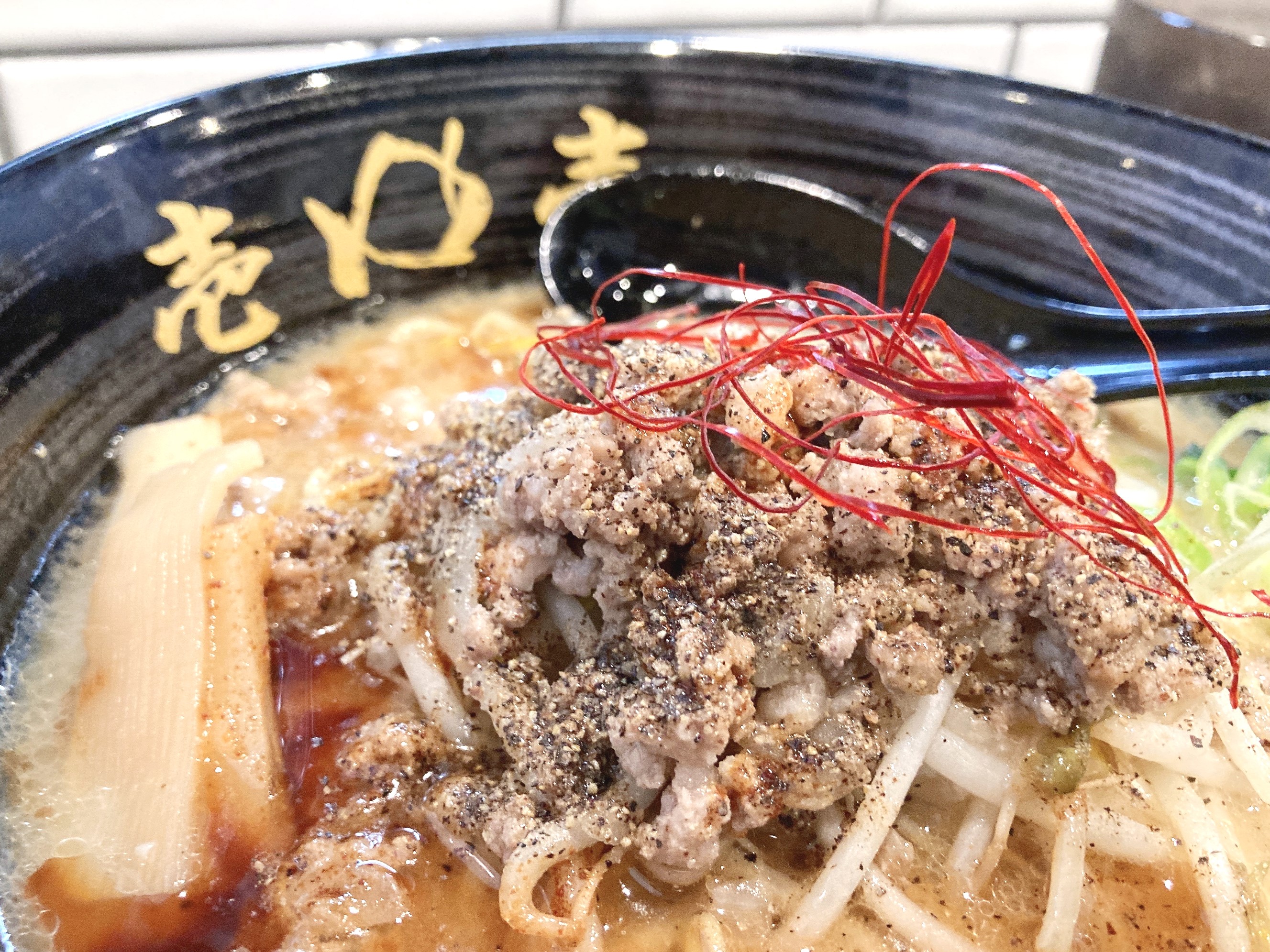 辛いものが好きな方にはこちらもおすすめ。味噌とんこつラーメンに辛味が追加されたラーメンです。濃厚な味噌とんこつスープに後からピリッと辛味がやってきて、また違った味。