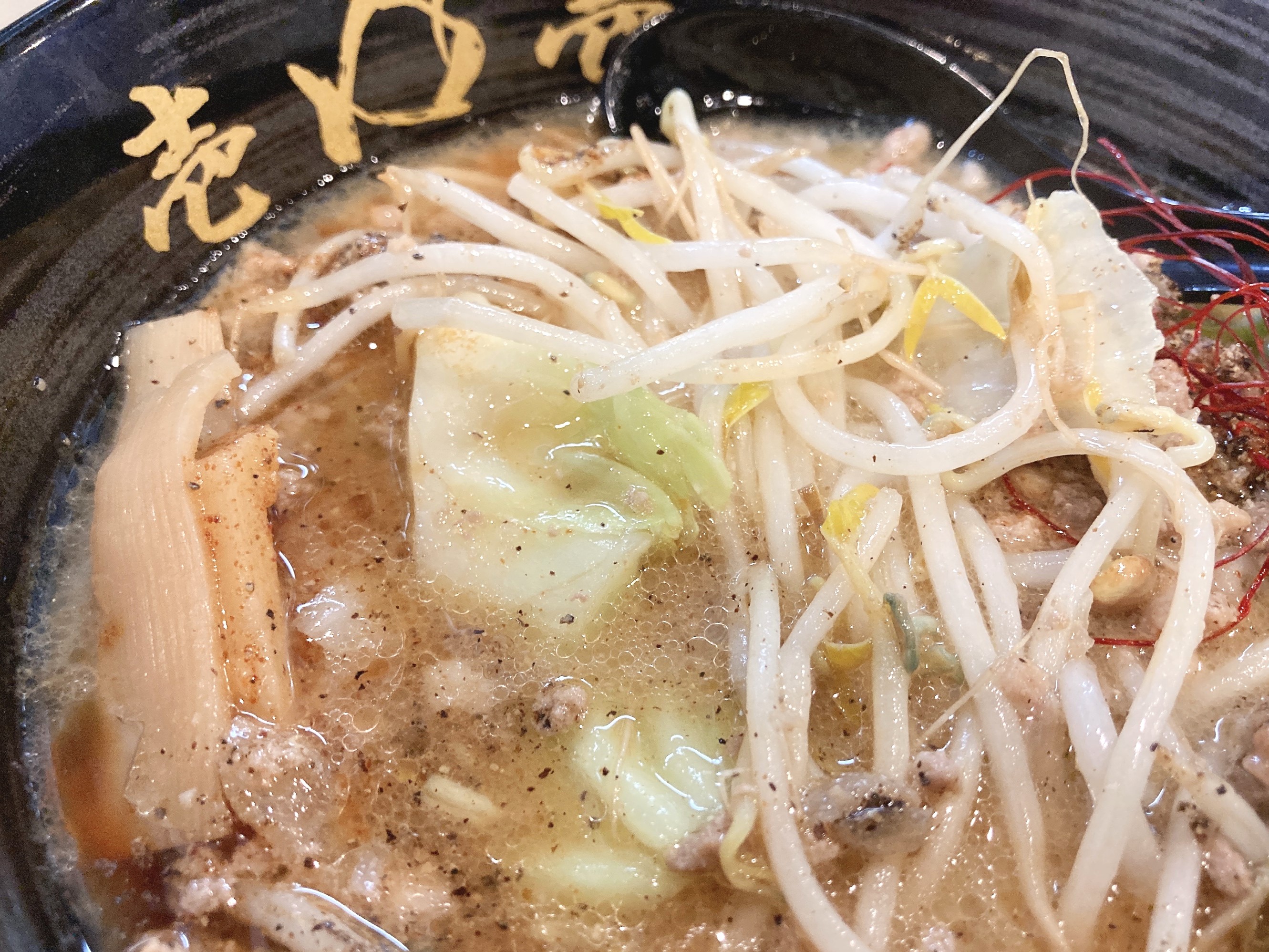 まずはスープから。味噌の旨味が濃く溶け込んでいるスープ。味噌の甘さも感じますが、たっぷり掛かっている山椒がピリッとスパイシーで後引く美味しさです。