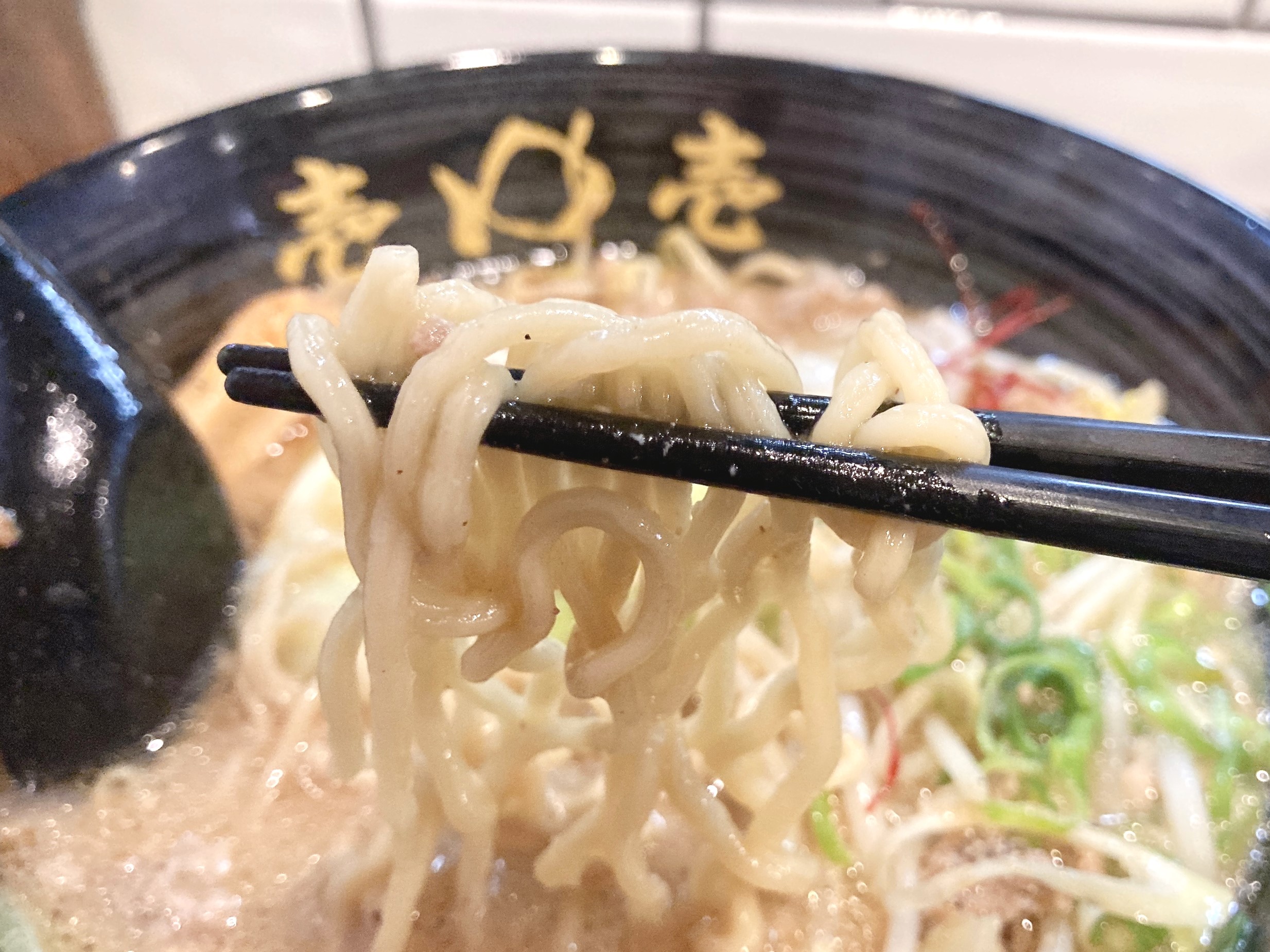麺は、ちぢれ麺とストレート麺から選べます。私はちぢれ麺をセレクトしました。つるつるとした麺ですが、スープがしっかりと絡みます。たまらん。