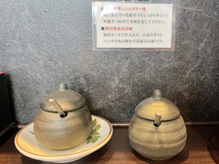 テーブルの上には2種類の薬味があるので、ぜひこちらも使って味変してみてください。