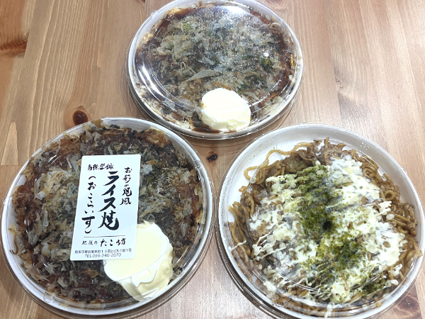 名物のライス焼き以外にも、焼きそばやお好み焼きなどテイクアウトできる種類が豊富なのも魅力。色々頼んでシェアしたいですね。