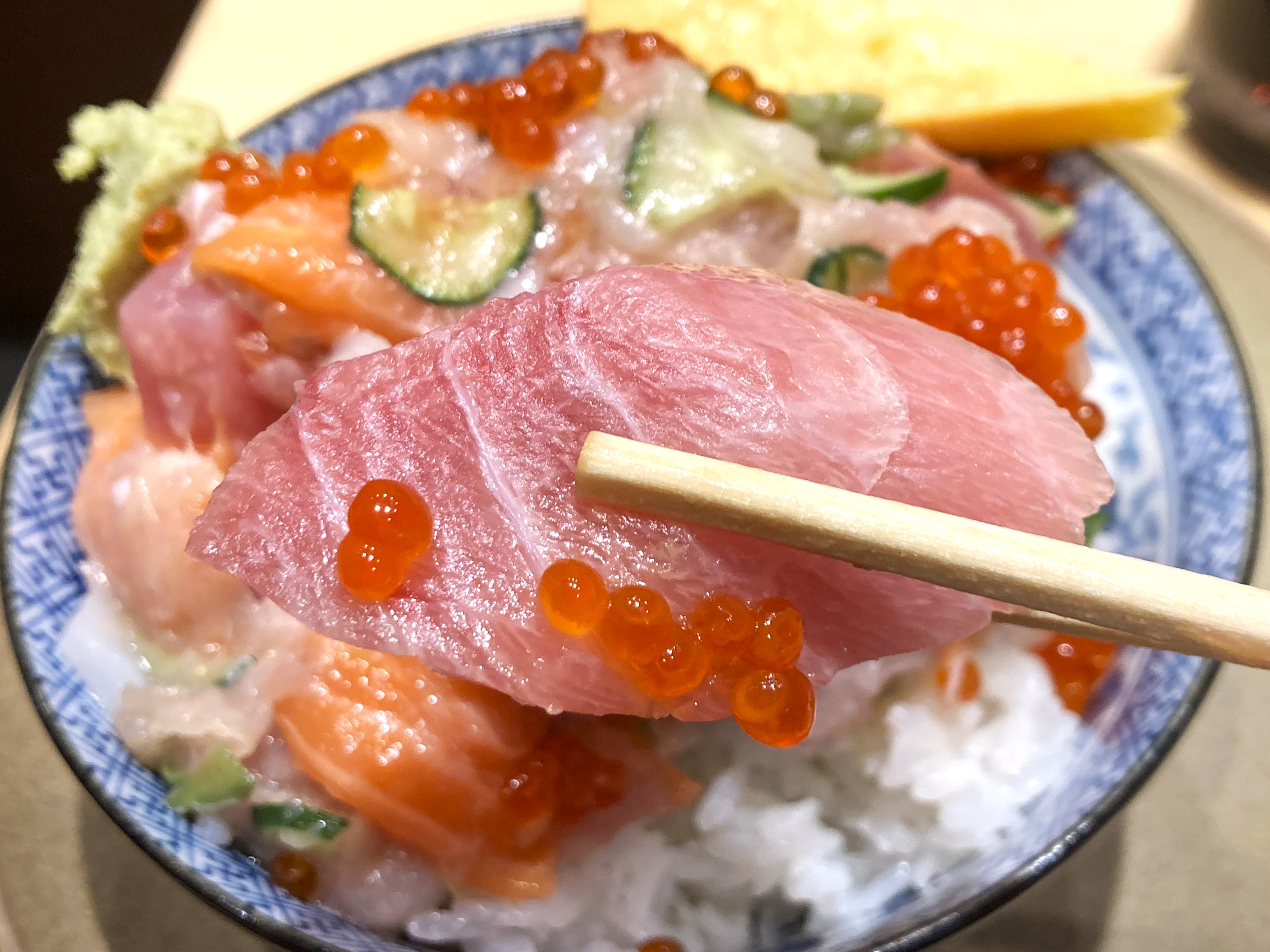 マグロ!今回は奮発して大トロが乗った海鮮丼(3,000円)!