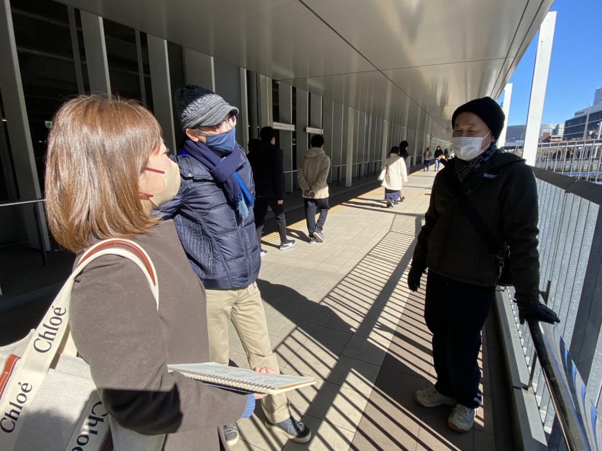 腹ごしらえして、インタビューを再開します。こちらで聞いたのは、買い物客の男性2人。伊藤とよく似た人物がいたので声をかけてみたのです。埼玉県からいらっしゃって、ランチとお買い物を楽しんだそうです。