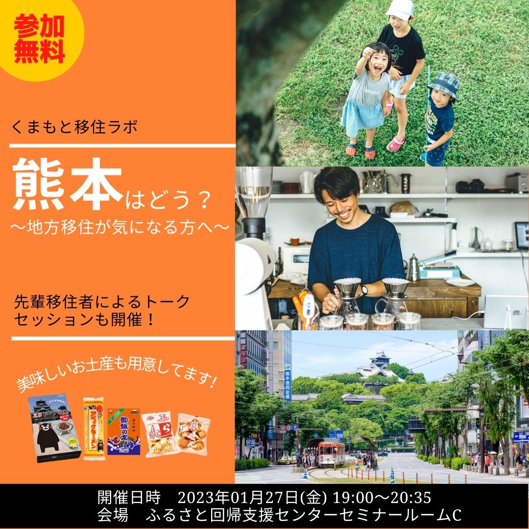 1月27日に移住セミナー「くまもと移住ラボ 熊本はどう?~地方移住が気になる方へ~」開催!!