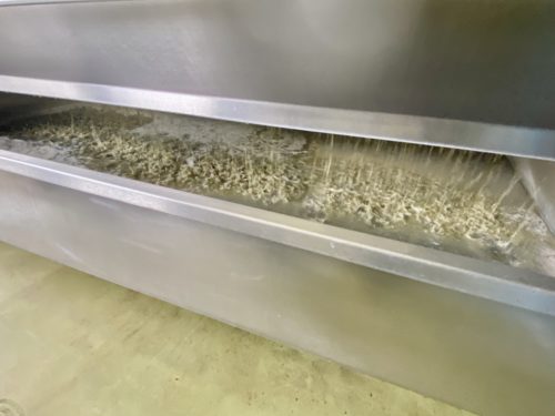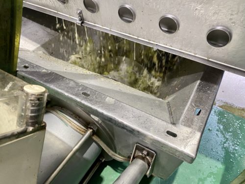 さっきの葡萄が最初にここに来るまで、わずか3分足らず。実の方は、プレス機で優しく絞られて果汁に!