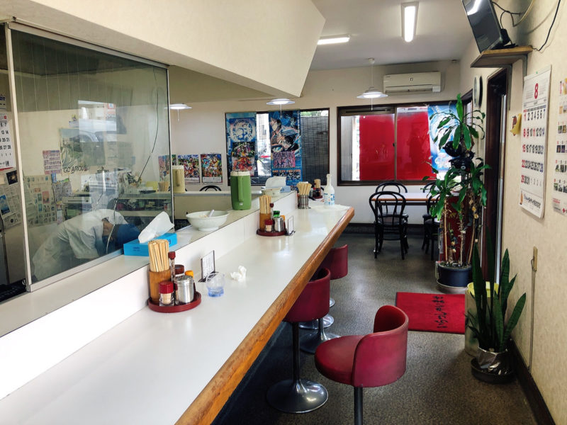 店内は、カウンター席とテーブル3席。カウンター席の目の前でラーメンを作っていただける昔ながらのラーメン屋スタイル。