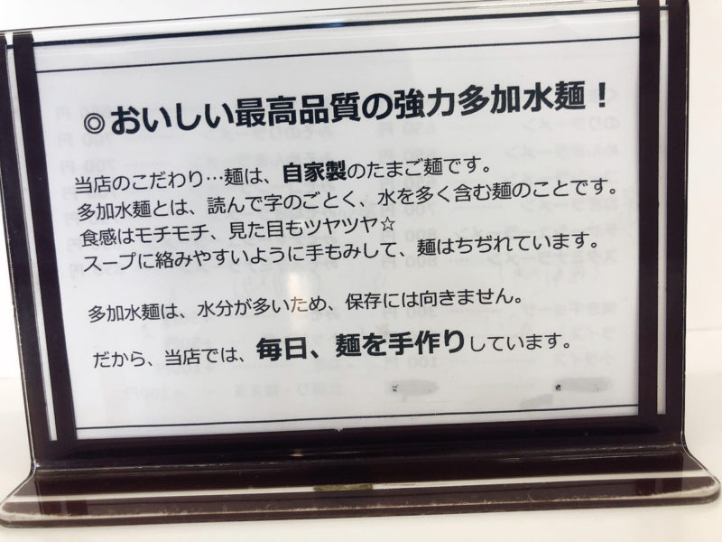 なんと!強力多可水麺という麺を作られているそうですが、麺の水分量が多いことから保存には向かず、毎日その日の分を手作りされているとのこと。