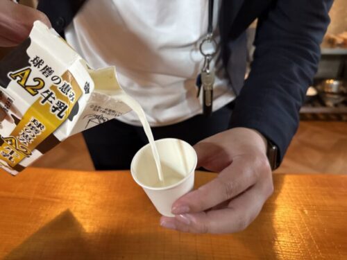 「うん。食事にあう牛乳ですね。ほら牛乳って味が濃すぎるのもあるでしょ?単体では美味しいけど食事と合わせるのはどうかなーって思ってたんですけど、これは食事の邪魔をしない」