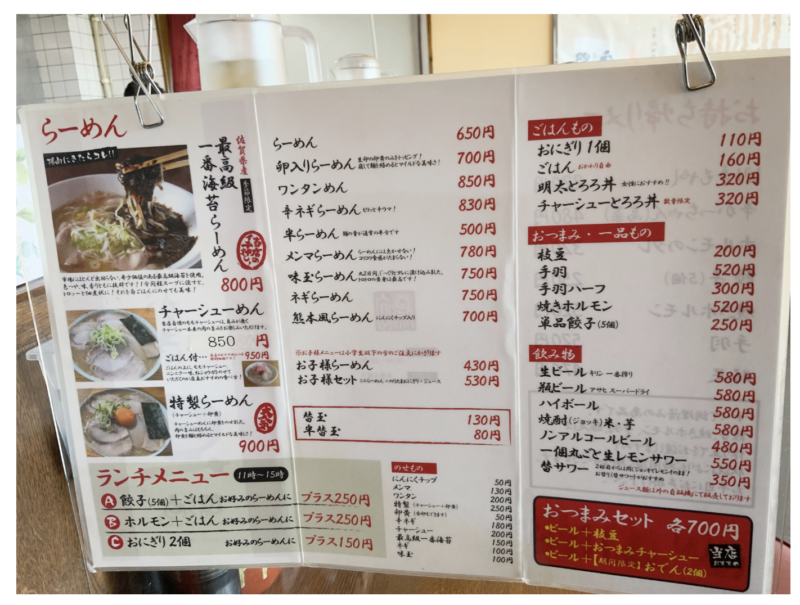 健軍店が同じメニューかどうかは分かりませんが、念のためメニュー貼っときます。今から何食べるか選んでおいてください。