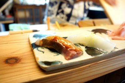 表面を炙ったことで、旨味が更にぎゅっと凝縮されたお寿司になりました。