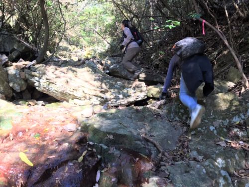 予想外のルートでしたが、水の流れる岩場を上るのも楽しいもんです!