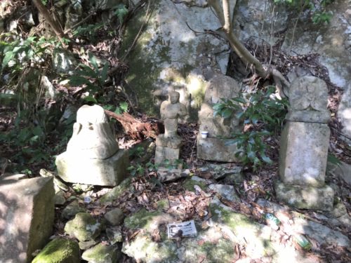 そして、ひたすら登ってたどり着いたお地蔵様がこちら!風化して落ちたのか、首がないものがほとんどで、周りの景色に溶け込んでいましたが、こんな山奥でお地蔵様に出合えるなんてびっくり!!
