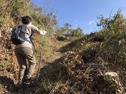 その後、市道に出て、倉岳遠望登山道から山頂を目指します。