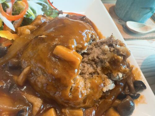 これがまた絶品で自家製ハンバーグとデミグラスソースで煮込んだ一品。