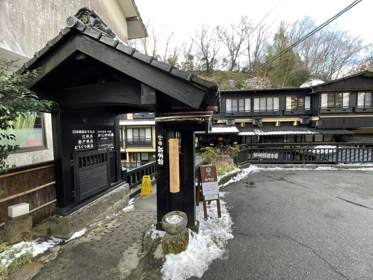 新明館!確かに洞窟風呂が有名なお宿です。さっそく行ってみましょう。