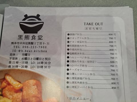 お店の名前は場所が熊本市中央区黒髪ということで「黒」、台湾のシンボル的な存在である「熊」と熊本の「熊」を合わせて「黒熊食堂」となりました。