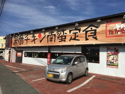 北区植木町鐙田、国道3号線沿いに去年12月にオープンした「黒酢チキン南蛮定食 たかもとや」。あまり見かけることのない黒酢チキン南蛮の専門店です!