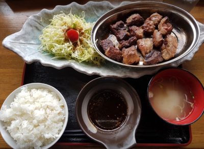 基本的に「黒酢チキン南蛮」を食べに行くお店になります。黒酢の風味がどうしてもダメという方もいるので、最近は「黒毛牛天守閣ステーキ定食」も追加されています。