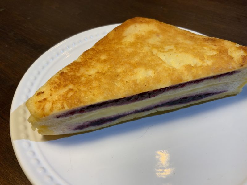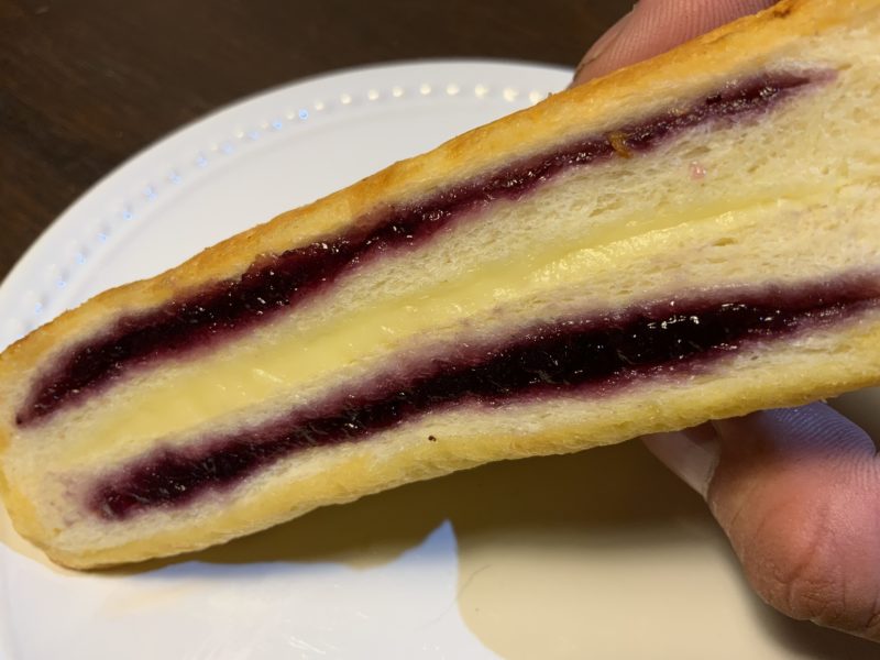 最初、ブルーベリージャム入りが2枚入ってるのかと思ったんですけど、よく見ると、ブルーベリー2層とチーズ1層になってるんですよ!