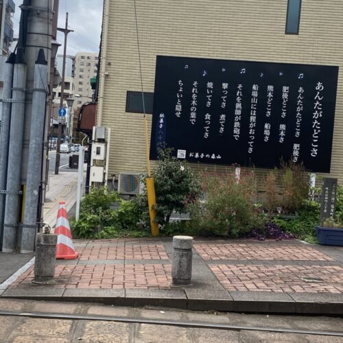 熊本市中央区、第一高校の生徒さんも通学に使っている市電の船場橋電停。