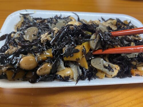 その名の通り、にんじん、大豆、こんにゃくとたっぷりの具材が入ったひじき煮。鉄分もしっかりとれるあって嬉しい家庭の味です。