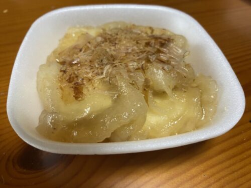 中のとろんとした絹ごし豆腐の食感とおだしの風味がよく合っています。別の日には揚げ出し大根もあったので、色々なレパートリーと出会えますね。