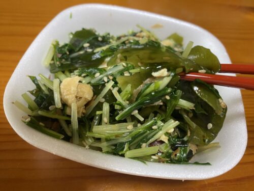 水菜とワカメのアゲごま和え 140円