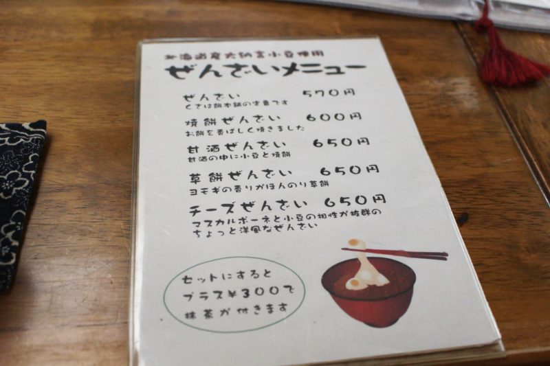名前の通りお餅のお店なのですが、この季節にやってくる理由はそう、ぜんざいです。
