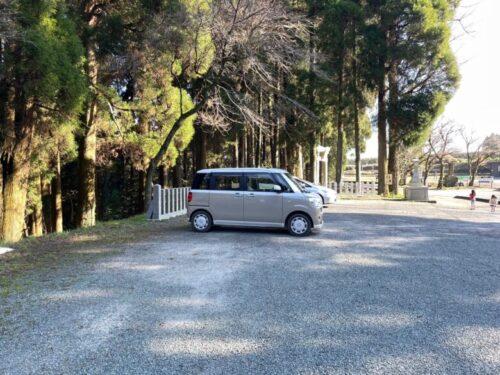 車は鳥居の手前の広いスペースに余裕をもってとめられます。