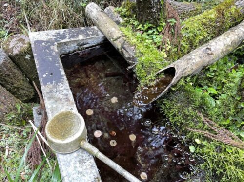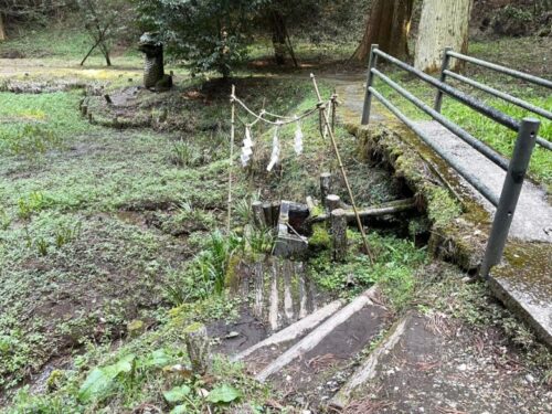 塩井社の鳥居からさらに下っていった先に、不老長寿の水がありました。