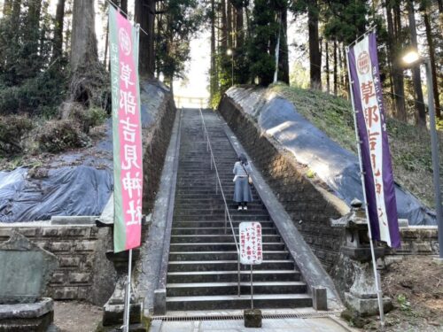 石段の下に社殿!日本三大下り宮の一つ「草部吉見神社」は御神木も立派だった