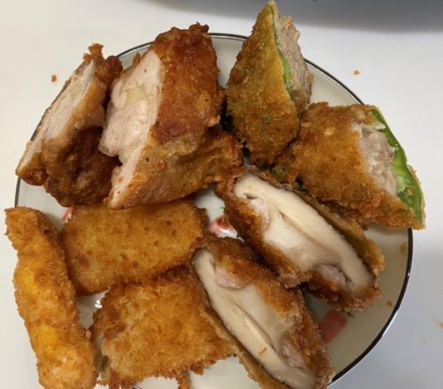 そして小麦色に揚がったカツたち。茶色い食べ物は正義!早く食べたい!!!