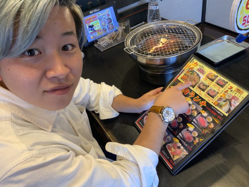 うきうきでコスパ最高でしたのカルビ丼をチョイスするPカイトに対して