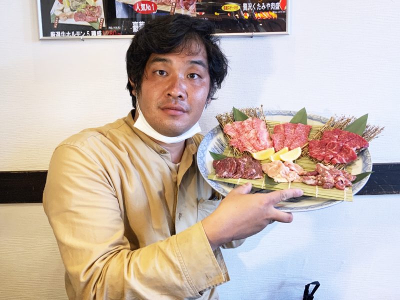 続いて、山田が頼んだ「豪華くたみや盛り」。6種類のお肉が乗っています。