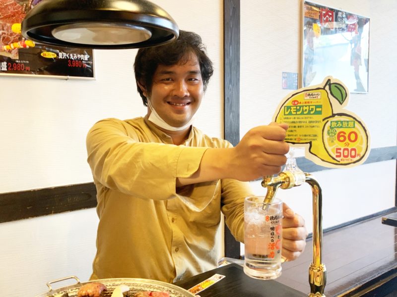 くたみやと言えば、全席にレモンサワーのサーバーがついていて、60分飲み放題税込550円という破格のサービスで話題のお店。
