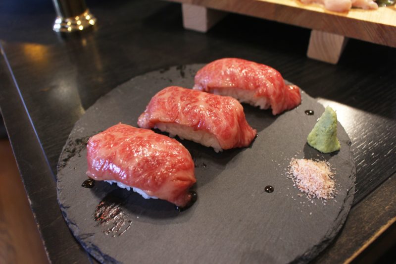 この肉寿司がまた絶品。口の中でぎゅわっと肉の味が広がって、気づいたら消えています。3つじゃ足りない、おすすめの一品です。