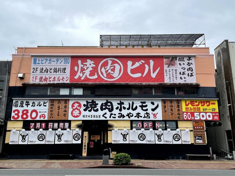 八代に出現した「焼肉ビル」!!田崎で人気の「焼肉ホルモン くたみや」本店が7月1日八代にオープン!