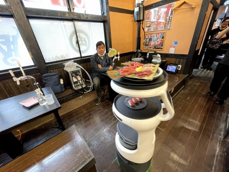 これ、最近ちょっと話題になっている配膳ロボット「サービィ」なんです。