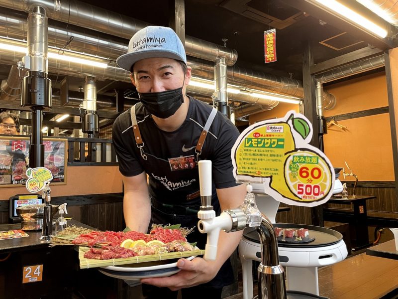 実はここ、7月1日にオープンした「焼肉ホルモンくたみや」の本店なんです。「くたみや」といえば、熊本市の田崎市場前にことし3月にオープンして、各席に設置されたサーバーで自分で注げるレモンサワーの飲み放題や、高品質の国産牛がたっぷりのってお手頃価格の肉盛が人気のお店です。