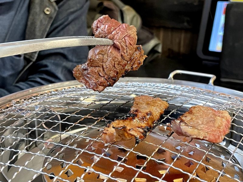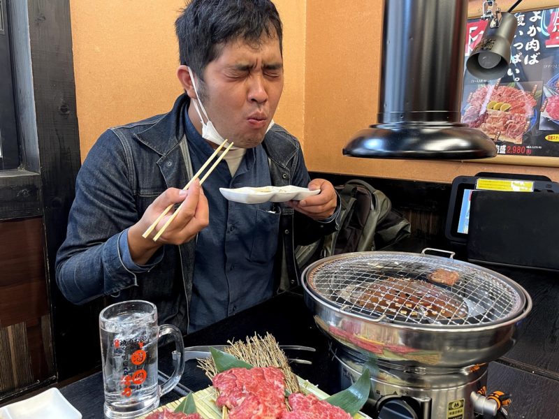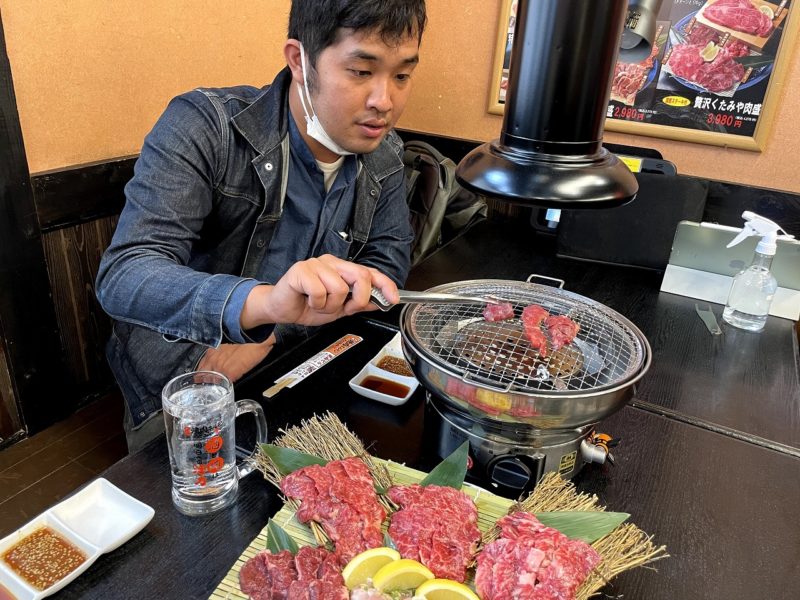 早速焼いていきます。焼肉は焼き過ぎずサッと焼くのが好きです。お肉が新鮮なので、火を通しすぎると勿体ないくらい。少量ずつ焼いて最高のタイミングで口に運びます。