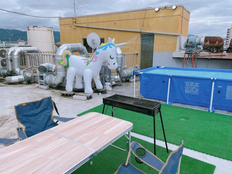 屋上はビアガーデンになっていて、焼き肉しながら予約していたらプールまで楽しめるそう。