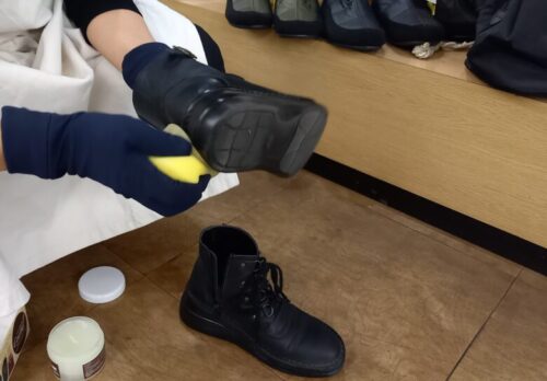 こちらは取材時、ちょうど熊本市内から来店していた常連さんの靴のメンテナンス。