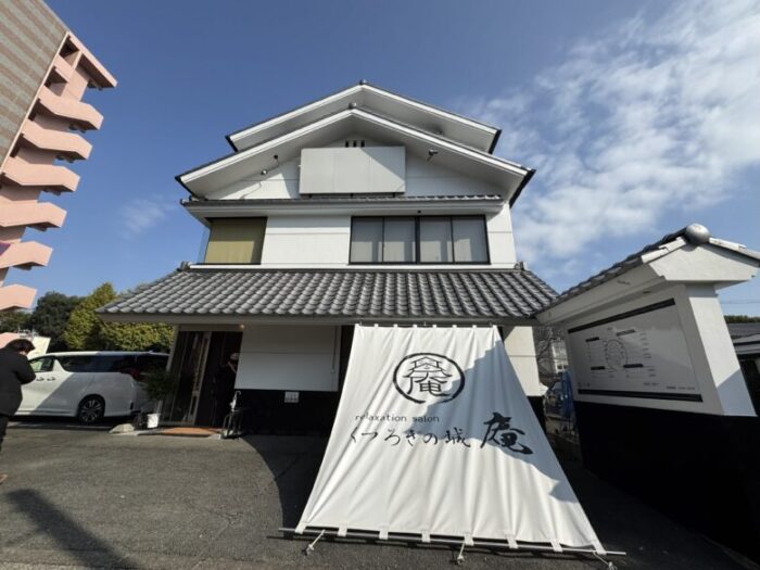 場所は熊本市中央区上京塚。「くつろぎの城 庵」は国道57号線沿いにあるので、ひょっとしたら「あ~~!!なんか見たことある」って方もおられることでしょう。
