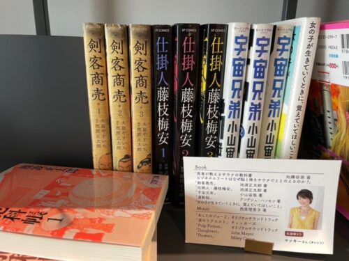 マッキーさんのコーナーを見ると、池波正太郎の時代小説から「宇宙兄弟」まで幅広いセレクトで、こういった仕掛けも楽しいですね!