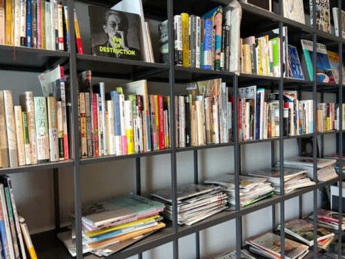 こちらのカフェ、プロモーションパートナーズ・共栄コア(広告代理店)が経営するカフェで、並んでいるのは会長と社長の個人蔵書なのだそうです。音楽好き、読書好き、サブカル好きというお二人が趣味で集められた蔵書は、背表紙だけでも見ごたえ十分!