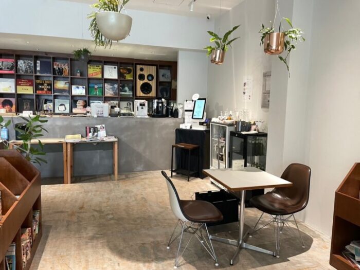 スピーカーは「HIGO BEAT」さんによる小国杉を使ったスピーカーで、お店が選曲したレコードが流れています。