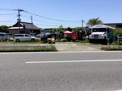御船町木倉の国道445号沿いにあるBAKESRcaféBUS。熊本バス自動車学校の近くです。レトロバスを改装したお店で、ひと目見たら個性的な外見ですぐにわかります!