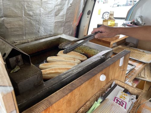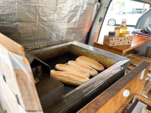 単なるワゴン販売ではなく、あくまでもキッチンカー。注文が入ってから、コッペパンを揚げ始めます。