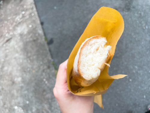 紙に包んで袋に入れてもらえるので持ち帰りもOKだけど、あげたてのアツアツをその場でいただくのがベストかもしれません。